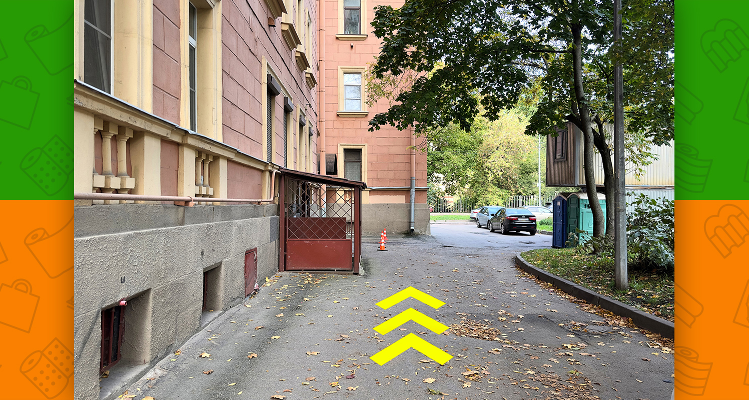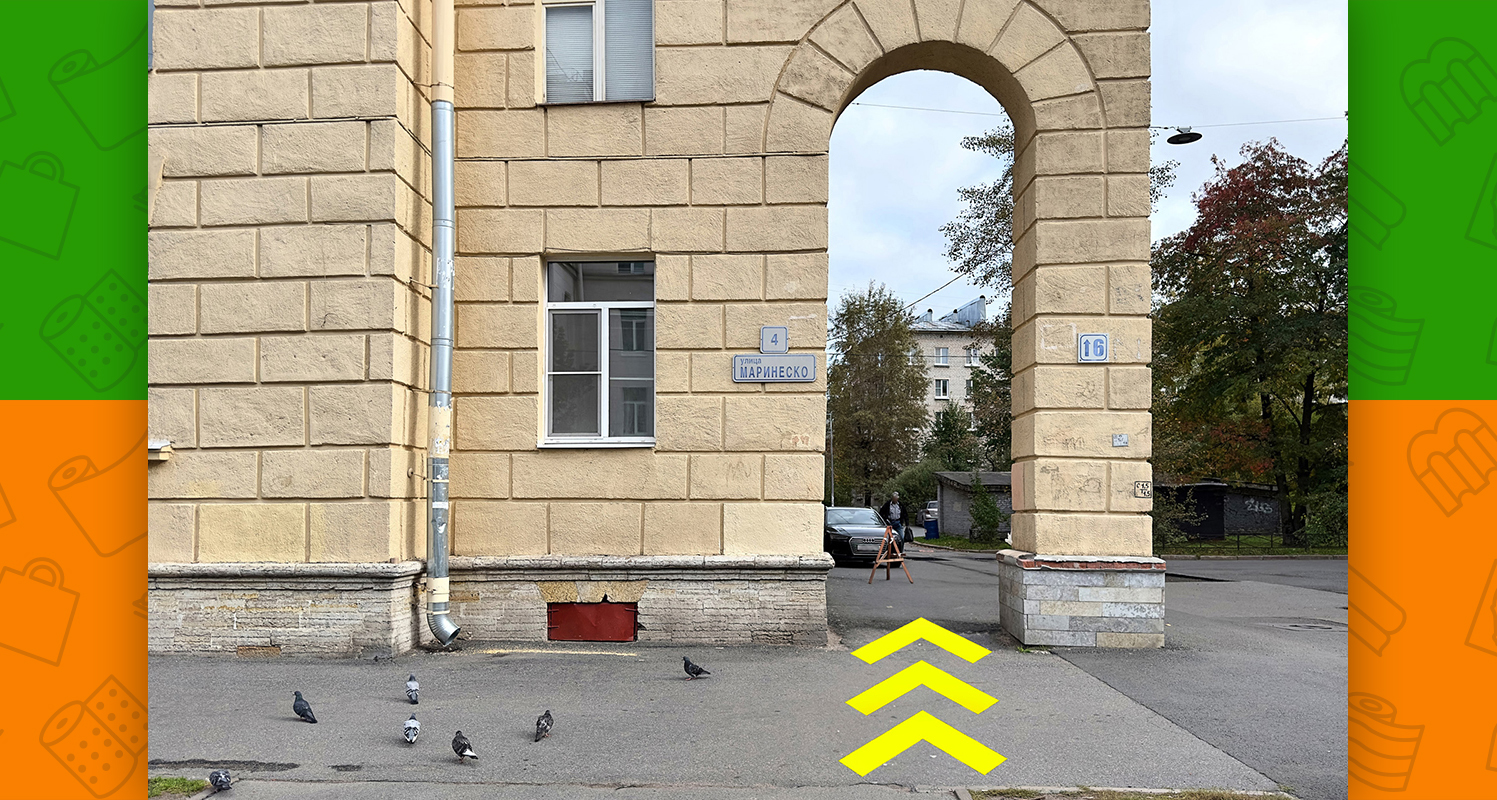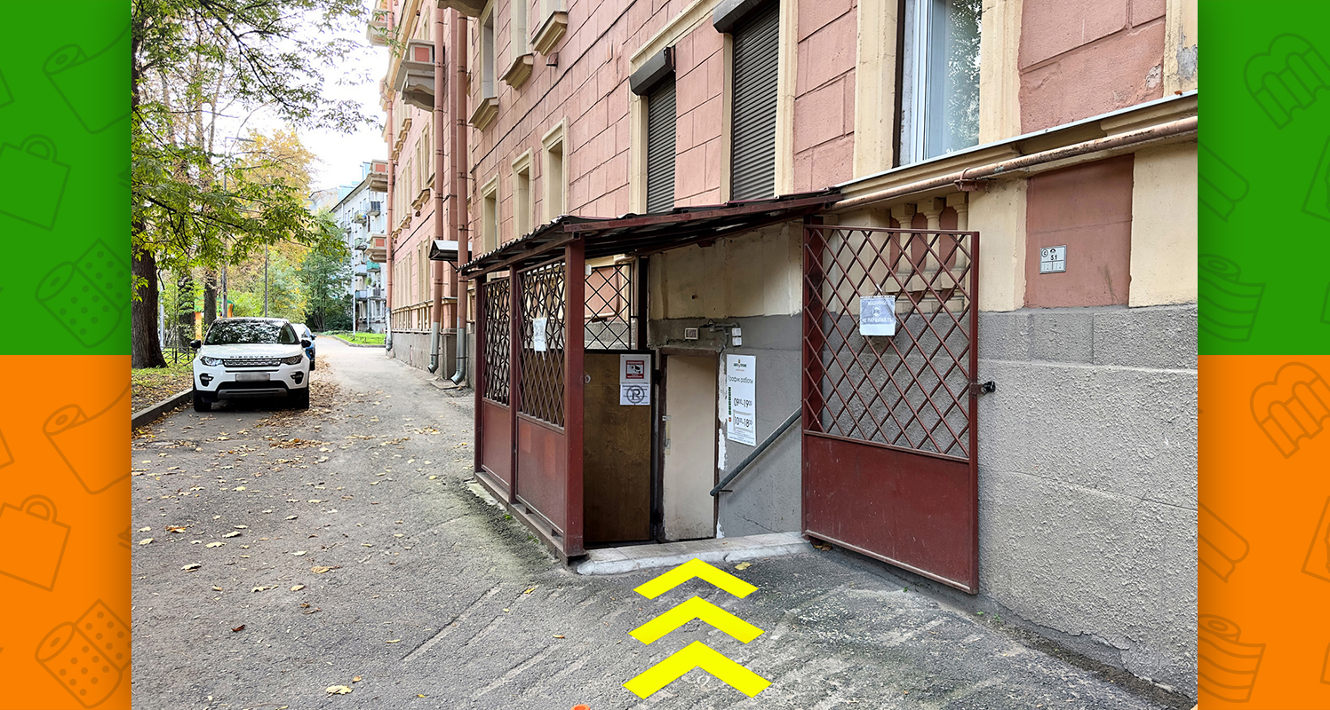 - между подъездами 3 и 4 располагается крытый вход с лестницей на цокольный этаж. Спускаетесь по лестнице — Вы на месте!