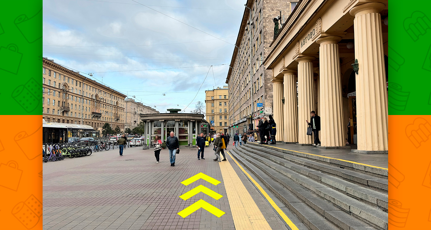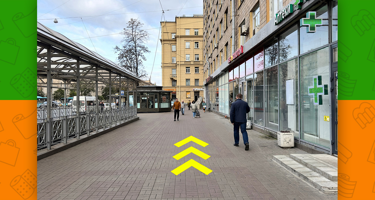 - на выходе из метро повернуть направо (пр-т Стачек будет располагаться с левой стороны)